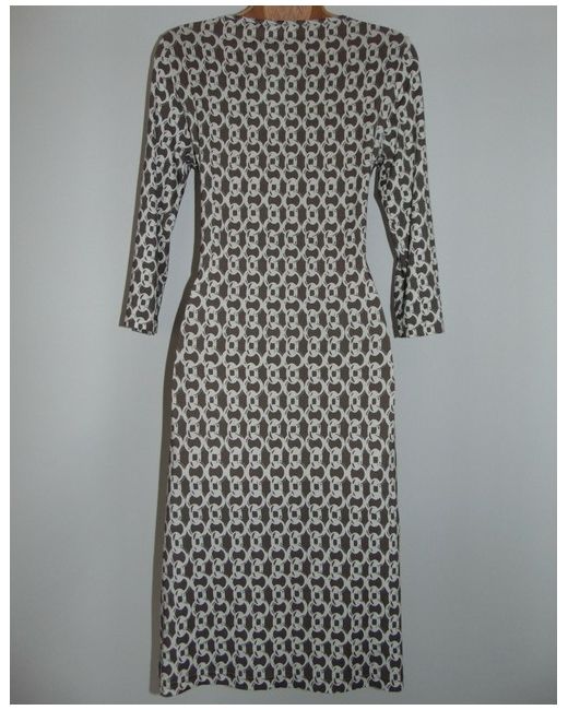 EFIXELLE -GERMANY - FROM PETER HAHN - EXCEPTIONAL QUALITY - JERSEY DRESS. Jersey dress by EFIXELLE with 3/4-length sleeves and a strikingly attractive chain print. A fashionable and comfortable, slightly tailored style with gatherings at the seam at the waist, a double-layered front bodice, slightly flared skirt and boat neck.