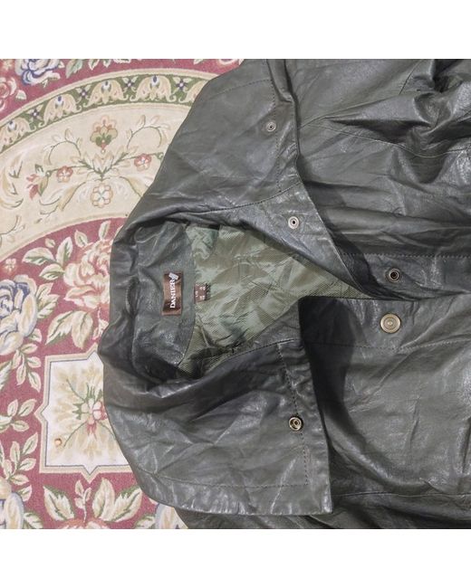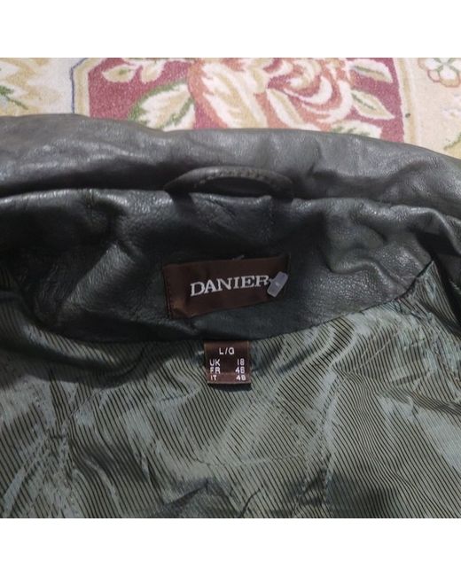 Elevate your style with this stunning designer jacket from Danier. Crafted from high-quality leather, this mid-length overcoat is the perfect addition to any wardrobe. The jacket features a dark green colour, making it a versatile piece that can be dressed up or down. With a size of L, this jacket is perfect for men who want to make a statement. The jacket is lined with polyester, ensuring that it is comfortable to wear. The Danier brand is known for its quality and style, making this jacket a must-have for any fashion-conscious man.