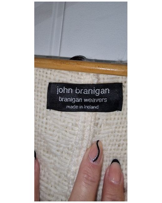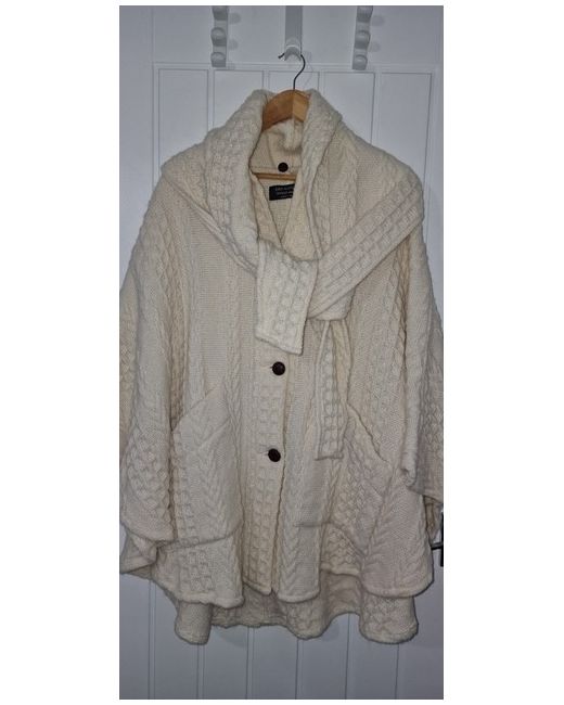 This is a women's wool cape from Branagan Weavers, designed in a cream colour. It is a one-size cape made from knit fabric, perfect for adding a stylish layer to your outfit. This cape is a versatile and timeless piece that can be worn with various outfits to elevate your look with a touch of elegance and warmth.