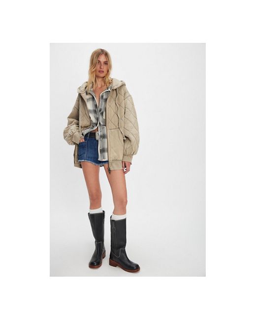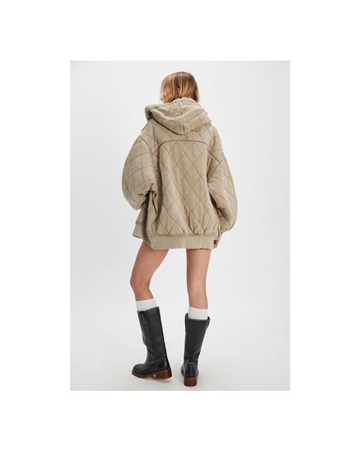 Featured in our signature diamond quilted cotton, this extra oversized zip-up from We The Free features an attached hood, ballooned sleeves, and big front pockets for the perfect cozy layer. * Zip-front closure * Hood with drawstrings * Dropped shoulders * Ribbed cuffs and trim We The Free Quilted Cardigan at Free People in Laurel Oak, Size: XS
