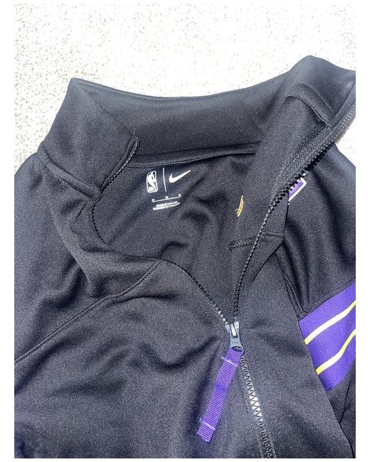 A must-have for all LA Lakers fans, the Nike Women's LA Lakers Courtside Tracksuit is designed in a black and gold color scheme with bold graphics to honor your favorite team. The set includes a jacket and matching pants with a textured print on the sides, elastic waistband and drawstring for comfort, and pockets for easy access to your phone Size Medium (more like a small /size 8)