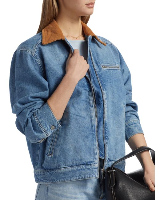 Crafted of rigid denim, the Harrison utility jacket from Reformation is designed with a contrast corduroy spread collar, a chest zip pocket, and side slant pockets. Made with organic cotton and recycled cotton Spread collar Long sleeves, button cuffs Chest zip pocket Side slant pockets Front zip closure 80% organic cotton/ 20% recycled cotton, exclusive of trim Machine wash Imported SIZE & FIT About 25.5" from shoulder to hem Model measurements: 5'10" tall Model is wearing a US size Small. Contemporary Sportswear - Contemporary Collections > Reformation > Saks Fifth Avenue > Barneys. Reformation. Color: Cooper. Size: XS.
