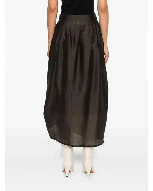 brown pleated detailing panelled design A-line shape straight hem subtle sheen