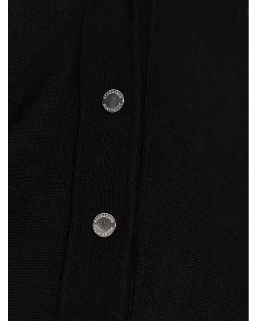 black wool V-neck long sleeves snap button fastening