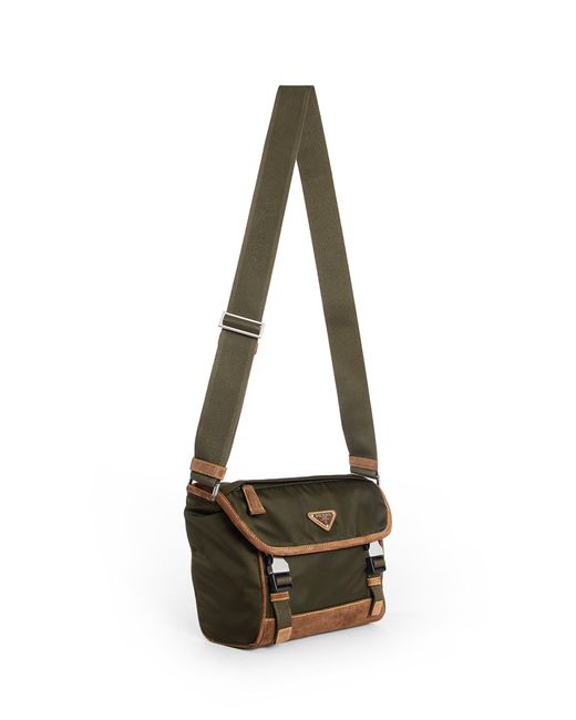 multicolorMusk Green/CocoaRe-Nylon and Suedefront enamelled metal triangle logofront zipped pocketadjustable shoulder strapflap with buckled webbing strapsRe-Nylon lininginternal zippped pocketback zipped pocket