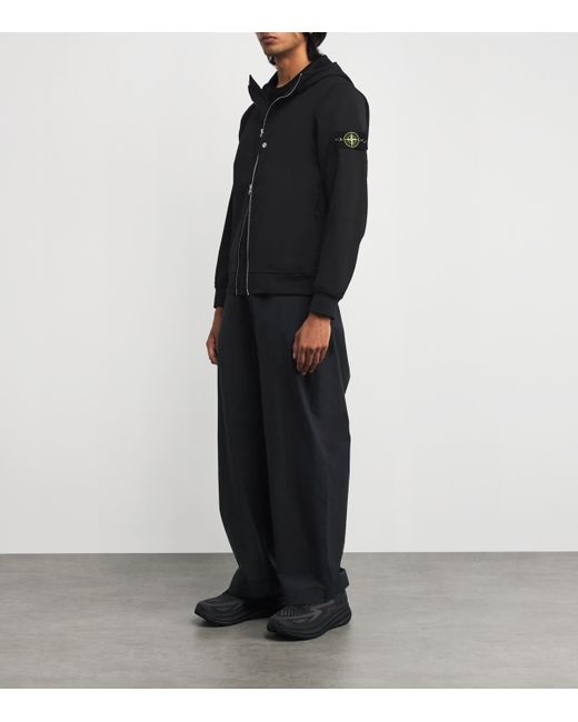 Endless hours of research have gone into developing the ideal technical jersey for Stone Island's Soft Shell bomber. The result? A three-ply performance fabric made entirely from recycled stretch canvas. Engineered for breathability and flexibility, the fabric is laminated for enhanced airflow, while the dyeing process uses 85% less water - underscoring the brand's commitment to innovation.