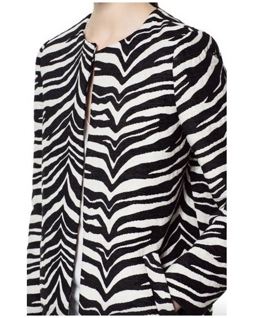 This Zara coat in size small features a striking zebra print design in black, perfect for adding a bold statement to your outfit. The coat is made from polyester and falls under the style category of a basic jacket, suitable for women looking to elevate their outerwear collection with a trendy piece. The regular fit ensures a comfortable and stylish look, making it a versatile addition to any wardrobe.