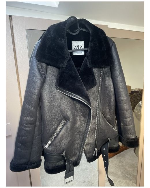 Zara black aviator jacket size XS. Leather material on the outside and fully fur lined on the inside. Zip pockets and belt. Very thick and warm. Brand new perfect condition. Original price £100