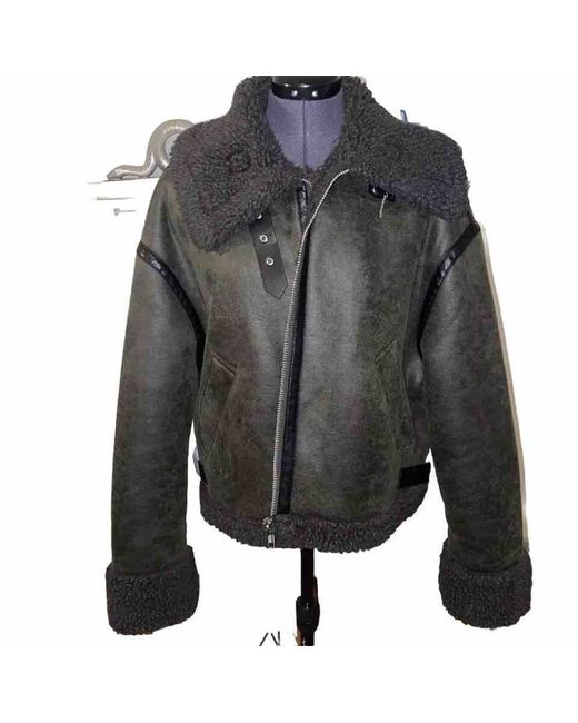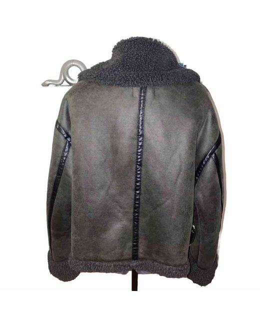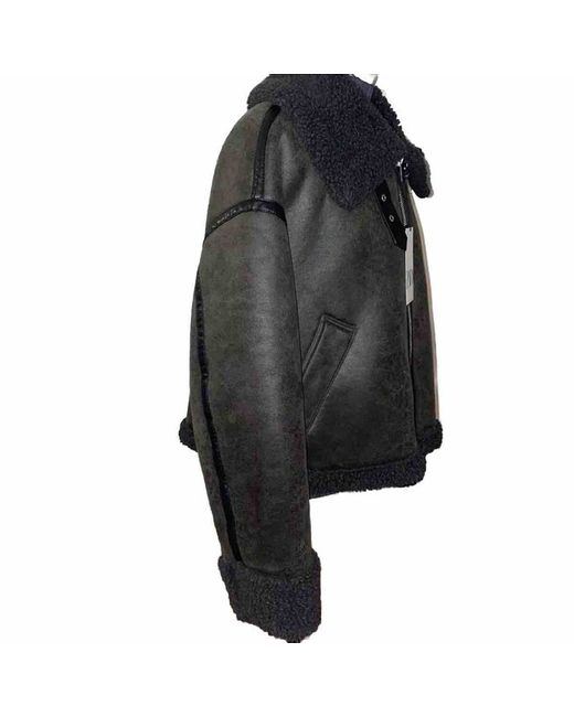 To clean: use a cloth or a clothes brush. •hand wash at max. 30 degrees Celsius. Fabric jacket with faux fur shearling lining. Lapel collar with tabs and long sleeves, front pockets. Slide tabs at the gems.