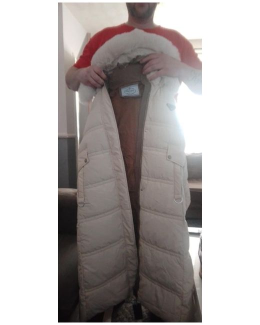 Cream Atlanta Long Puffer Winter Hooded Coat Large