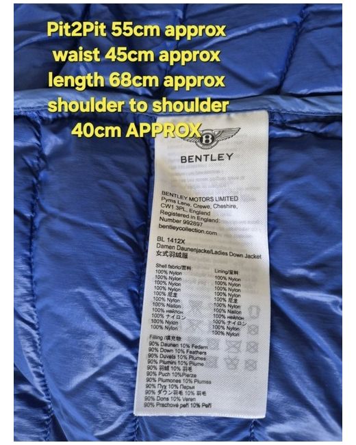 Measurements on pics Please do NOT select YODEL or RELAY I'll consider SENSIBLE offers, not silly ones. Discount on bundles- save on postage! padded jacket is showerproof, windproof, warm and stylish. A 100%-recycled polyester shell with a full-length zip, zipped side pockets and elasticated cuffs to keep the wearer dry. Warmth comes from the quilted construction, which keeps the jacket remarkably lightweight. Tactile Bentley Wings on the upper sleeve.