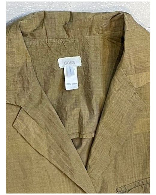 In DOSA size 1, equates to 8-10 UK size. a Small. Made in India. with characteristic slub in material. Looks handwoven/hand dyed. Subtle gradations in colour and quirks in texture. Lightweight unstructured blazer with relaxed fit.