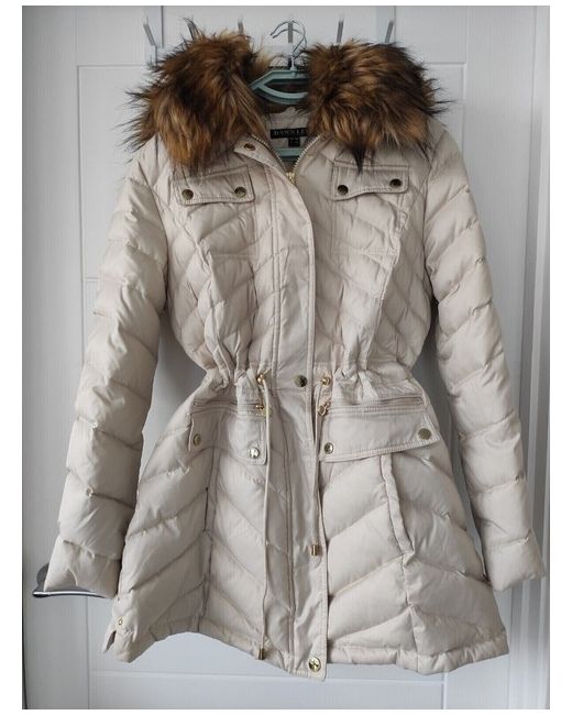 hooded Down Coat With Drawstring Removable Faux Fur Winter NWOT