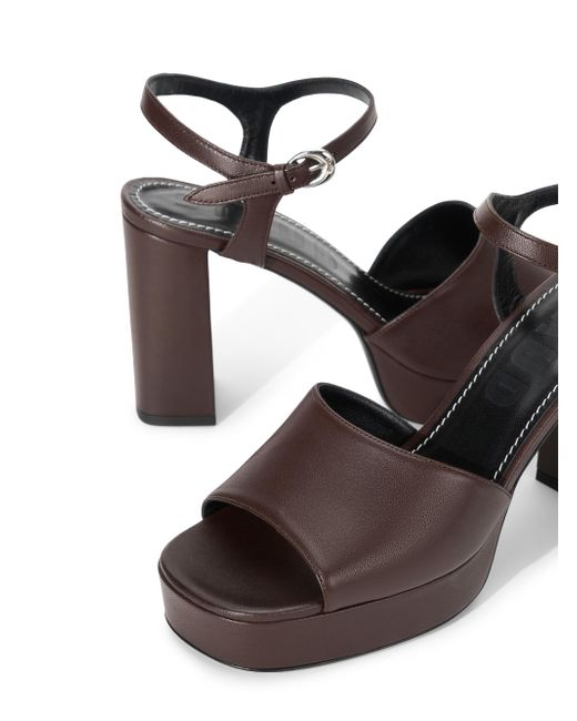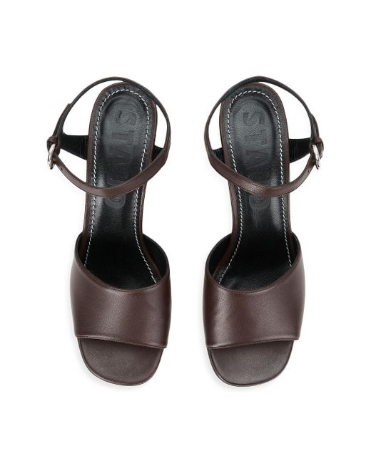 Staud's Jodie heels feature a sleek design crafted of leather. The platform height adds a bold touch to any ensemble. Open toe Buckle closure Leather Upper Leather lining Leather sole Made in Portugal SIZE Platform: about 4" (100mm). Women's Shoes - Workshop Shoes > Staud > Saks Fifth Avenue > Barneys. Staud. Color: Espresso. Size: 5.
