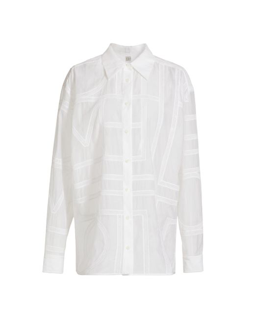 Crafted of cotton and silk, this button-front shirt from Toteme is styled with an embroidered monogram motif. Spread collar Long sleeves, button cuffs Button-front closure 65% cotton/35% silk Dry clean Imported SIZE & FIT Model measurements: 5'10" tall Model is wearing a US size 4. Advanced Designer - Designer Emerging Brands > Toteme > Saks Fifth Avenue > Barneys. Toteme. Color: White. Size: 00.
