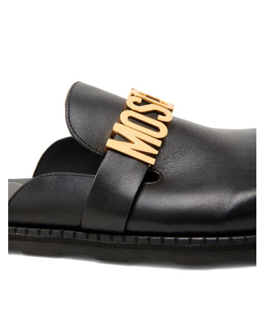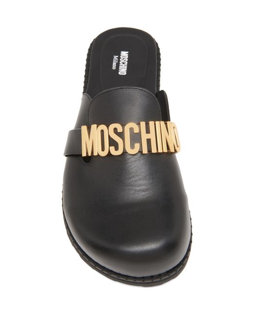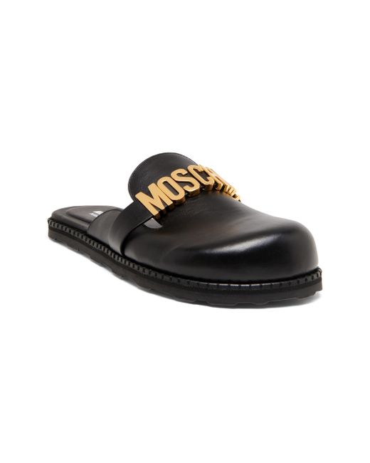 These Moschino mules are crafted in Italy of premium leather, featuring a round toe and signature logo detail. Round toe Slips on Leather upper Leather lining Leather sole Made in Italy. Women's Shoes - Designer Womens Shoes > Moschino > Saks Fifth Avenue > Barneys. Moschino. Color: Black. Size: 6.