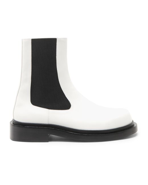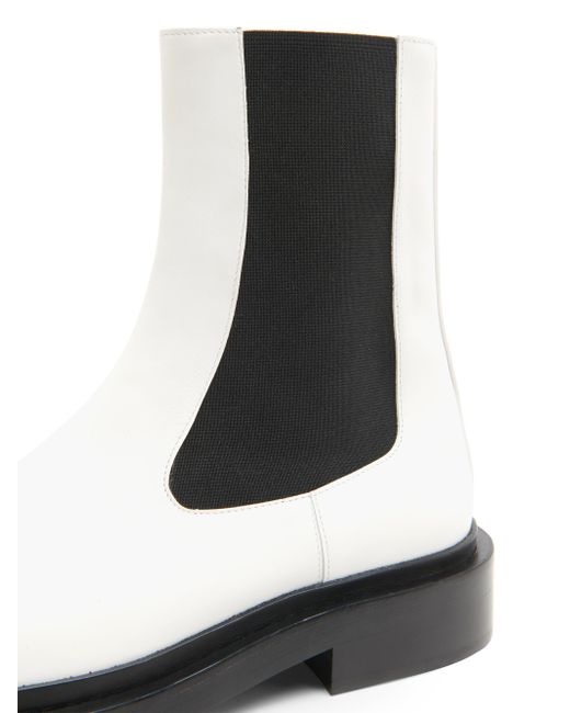 Crafted of premium Italian leather, Jil Sander's ankle boots showcase a sleek design and refined silhouette. This piece features a rubber sole and elasticized trim for easy pull-on access. Round toe Leather upper Leather insole Rubber sole Made in Italy SIZE Heel: about 0.5" (15mm) Platform: about 0.25" (10mm) ABOUT THE BRAND Known for its simple sophistication, German label Jil Sander is dedicated to a pure design aesthetic and exceptional craftsmanship. Launched in 1968, the brand focused on clean lines, later evolving to epitomize luxury clothing for a new generation of businesswomen. Since 2017, Creative Directors Lucie and Luke Meier have revitalized the company's offerings, staying true to its roots with crisp tailoring and refined silhouettes. Women's Shoes - European Designer Shoes > Jil Sander > Saks Fifth Avenue > Barneys. Jil Sander. Color: Porcelain. Size: 7.