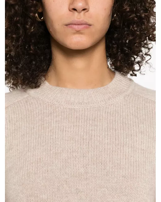 beige round neck long sleeves ribbed cuffs and hem wool blend