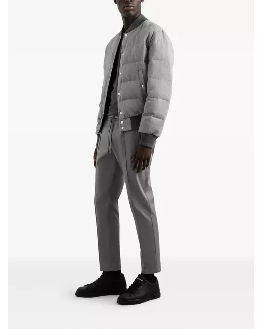 grey front snap button fastening side welt pockets band collar ribbed cuffs and hem