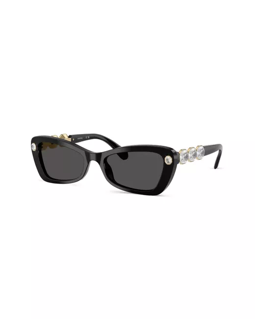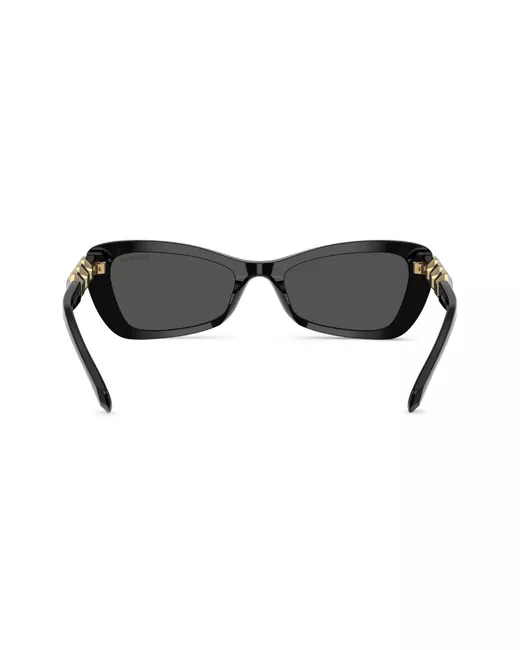 black crystal embellishment polished finish rectangle frame tinted lenses sculpted arms curved tips These glasses come with a protective case.