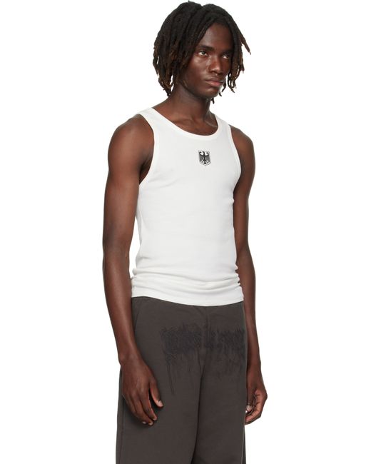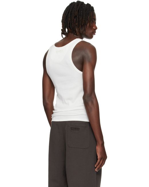 Rib-knit stretch cotton tank top. · Scoop neck · Graphic printed at chest · Logo embroidered at back collar Supplier color: White