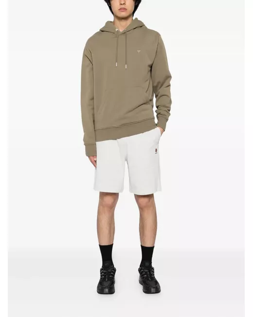 light grey front tie fastening two side welt pockets rear zip-fastening pocket logo patch to the rear