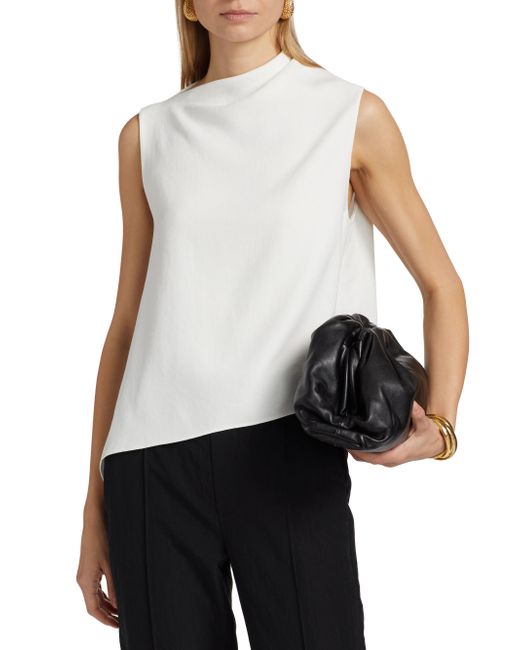 This Vince top is styled with an asymmetric neckline and designed with a draped A-line silhouette. Asymmetric neckline Sleeveless Pulls over 100% polyester Hand wash Imported SIZE & FIT About 19.25" from shoulder to hem Model measurements: 5'10" tall Model is wearing a US size Small Please note: This brand fits slightly larger. Consider ordering a half size down. Contemporary Sportswear - Vince > Vince > Saks Fifth Avenue > Barneys. Vince. Color: Off White. Size: Medium.