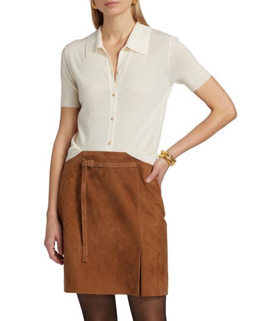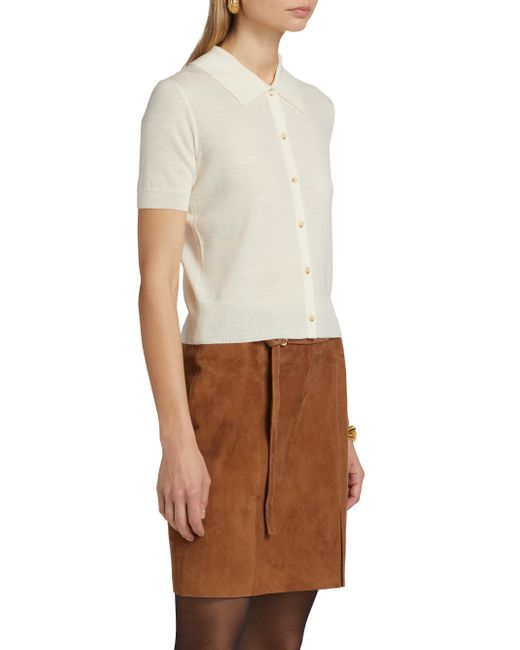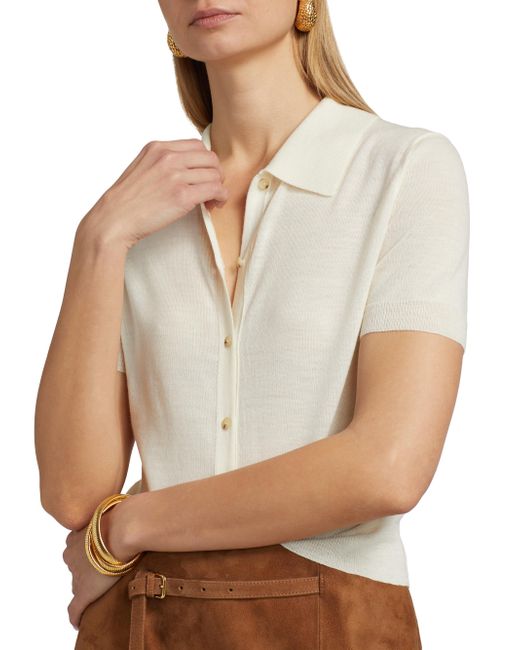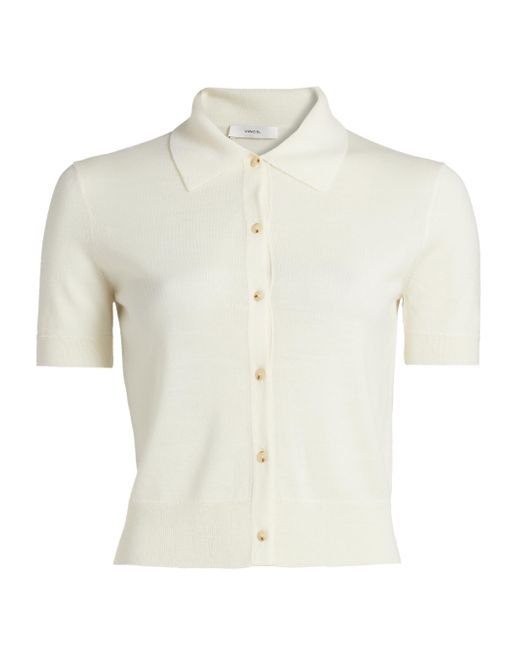 Crafted of a cozy wool blend, Vince's boxy shirt features a classic spread collar, short sleeves, and a button-front closure. Spread collar Short sleeves Button-front closure 73% wool/21% polyester/6% cashmere Hand wash Imported SIZE & FIT About 20.25" from shoulder to hem Model Measurements: 5'10" tall Model is wearing a US size Small Please note: This brand fits slightly larger. Consider ordering a half size down. Contemporary Sportswear - Vince > Vince > Saks Fifth Avenue > Barneys. Vince. Color: Off White. Size: Large.