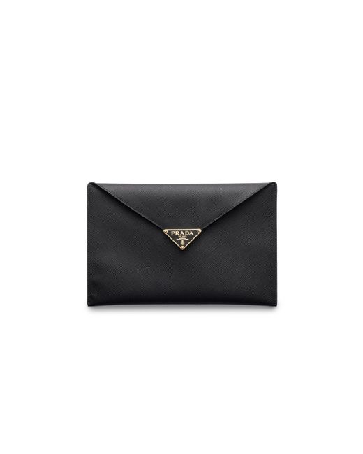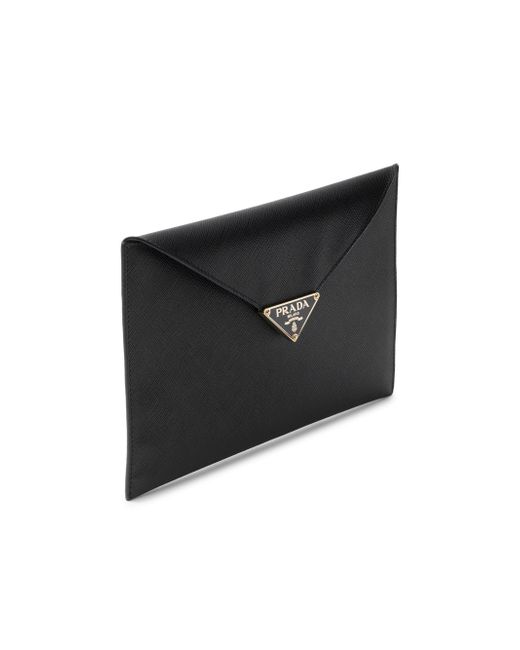 Snap closure Enameled metal triangle logo Three card slots Leather lining Imported 100% Calf leather 23W x 15H cm / 9W x 5.9H in. Lsd Handbags - Prada Handbags Access > Prada > Saks Fifth Avenue > Barneys. Prada. Color: Black.