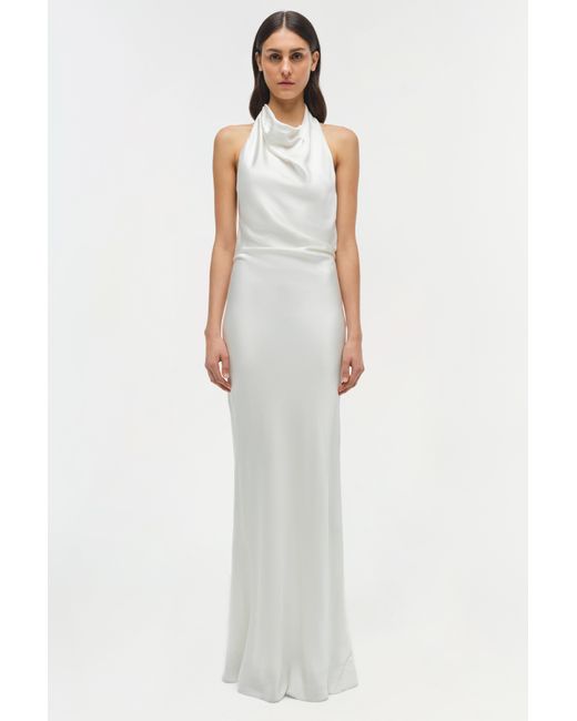 SPRING 2025 WOMEN'S COLLECTION The Reannon Satin Gown in Ivory. Crafted from our classic satin, this stunning draped gown features a fluid silhouette and a lustrous finish that embodies understated elegance. SIMKHAI Women's Reannon Satin Gown in Ivory, Size 0