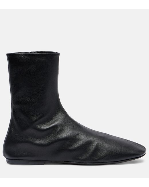 Upper: leather. Lining: leather. Sole: leather insole, rubber sole. Toe shape: square toe. Made in Italy. Includes: shoe box. Designer color name: Black. Item color: black. Closure: zipped side.