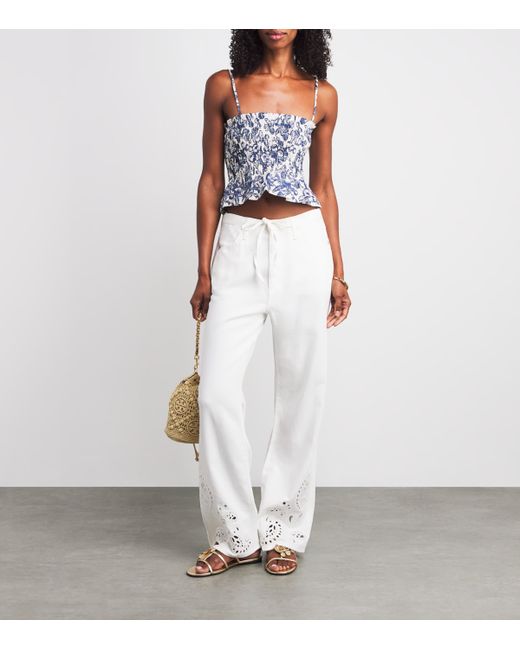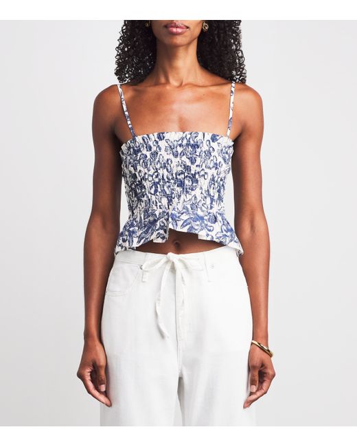 For its latest collection, Maje celebrates the closing of summer and embraces simplicity, with its signature fruit print growing the charm of its pieces. Here, the motif blooms on the breathable cotton of this crop top, made with hand-smocked detailing and a ruffle basque for a romantic flourish.