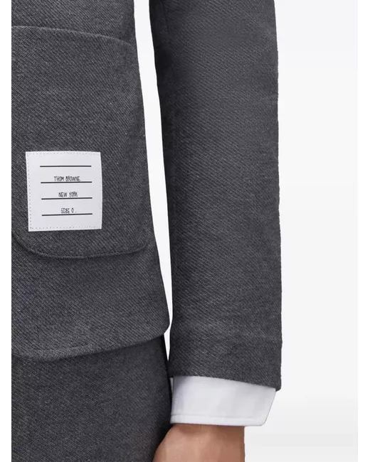 grey cotton signature grosgrain loop tab signature 4-Bar stripe notched lapels chest patch pocket crop sleeves front button fastening two front patch pockets