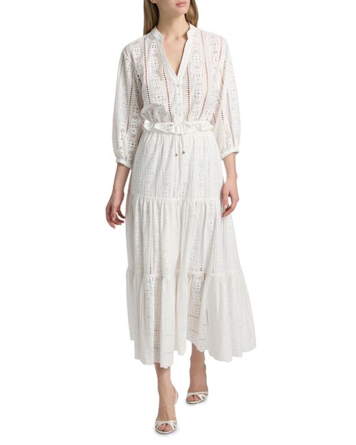 Cut for an oversized cropped fit, the Perrin top from Cara Cara is crafted of embroidered eyelet cotton voile and styled with a split neck and a drawstring waist. Split collar Three-quarter-length sleeves Button-front closure, drawstring waist 100% cotton Dry clean Imported SIZE & FIT About 19.25" from shoulder to hem Model measurments: 5'10" tall Model is wearing a US size Small. Contemporary Sportswear - Trend > Cara Cara > Saks Fifth Avenue > Barneys. Cara Cara. Color: Bria Eyelet Ivory. Size: XS.