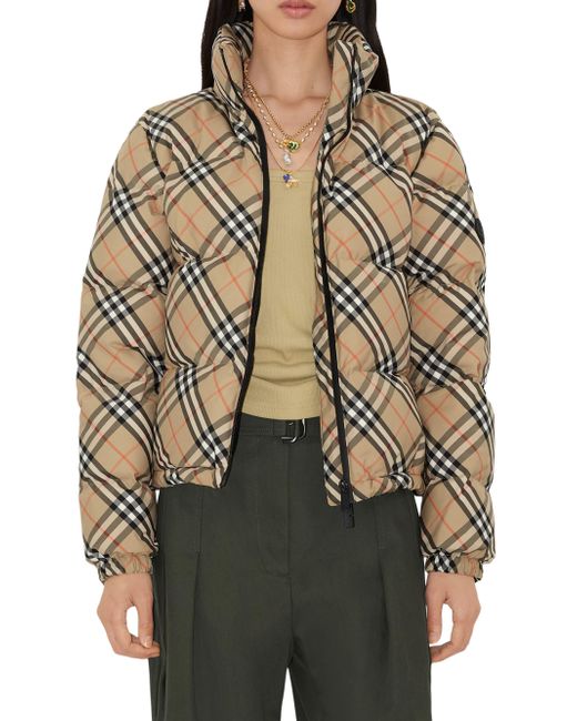 This puffer jacket from Burberry is styled with the label's signature Heritage check, a packaway hood, and a Knight stamp appliqué, an archival motif from the 1980s. Packaway drawcord hood Stand collar Long sleeves, elasticized cuffs Front pockets Front zip closure 100% polyester Lining: 100% polyamide Fill: 90% goose down/10% goose feathers Machine wash Imported SIZE & FIT Model measurements: 5'10" tall Model is wearing a US size Small ABOUT THE BRAND Founded in 1856 by 21-year-old Thomas Burberry, the brand set out with a mission to stylishly protect against British weather-and Burberry's iconic trench coat was born. In the 1920s, its renowned check pattern was introduced as the coat's lining. Today, under Creative Director Daniel Lee, the heritage brand continues to evolve and create timelessly classic men's, women's and kids' pieces, along with beauty. Advanced Designer - Burberry > Burberry > Saks Fifth Avenue > Barneys. Burberry. Color: Sand Ip Check. Size: Medium.