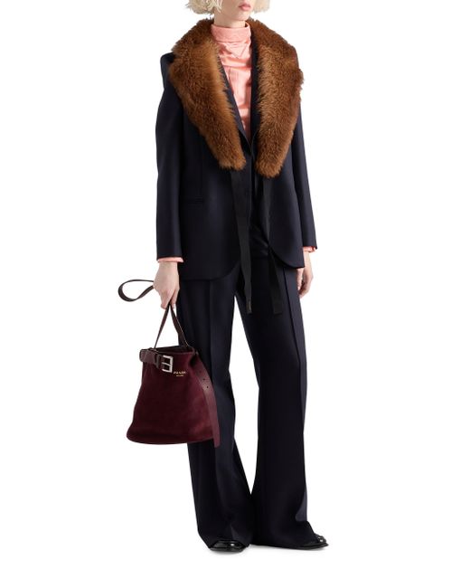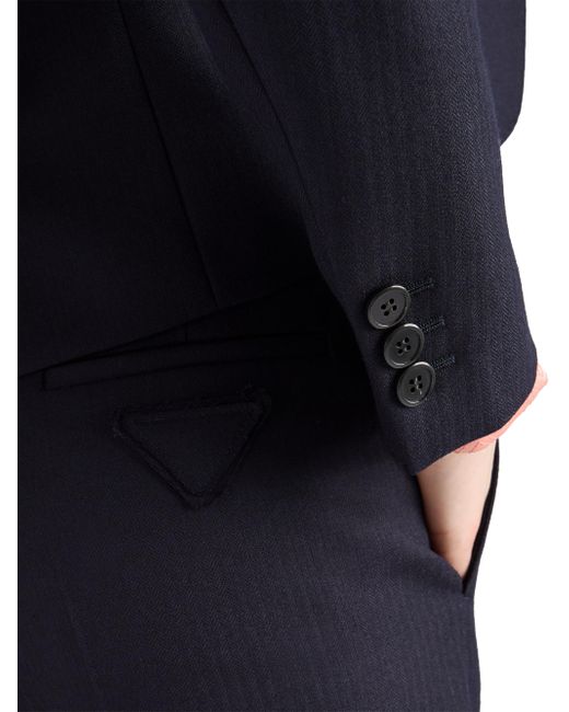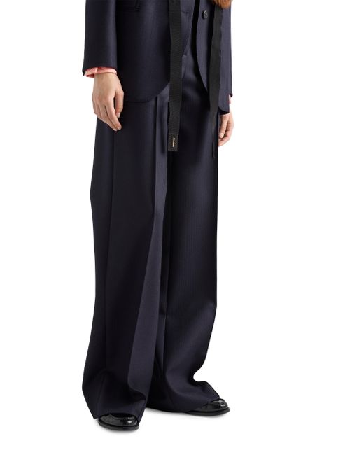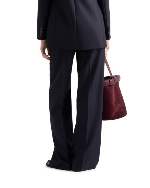 Menswear fit Unlined Zipper fly with hook Fabric triangle logo Inseam pockets Back welt pockets Imported 100% Fleece Wool. Lsd Rtw - Prada Rtw > Prada > Saks Fifth Avenue > Barneys. Prada. Color: Blue. Size: 2.