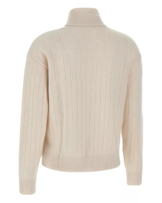 cream turtleneck vertically ribbed weave long sleeves ribbed cuffs ribbed hem
