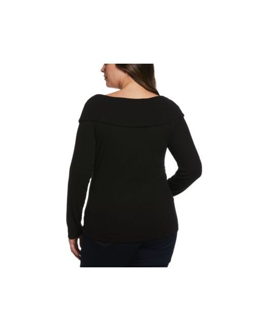 Women's Black Plus Marilyn Ribbed Crossover Long Sleeve Top