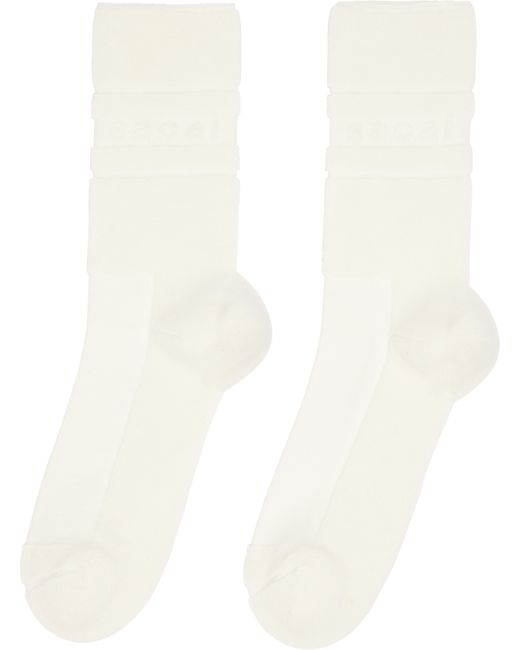 Pair of calf-high stretch cotton-blend terrycloth socks. Jacquard logo at cuffs. Supplier color: White