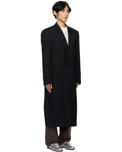 Wool twill coat. · Peaked lapel · Double-breasted button closure · Welt pocket at chest · Flap pockets at waist · Buttoned surgeon's cuffs · Central vent at back hem · Welt pockets at interior · Full satin twill lining · Horn hardware Supplier color: Black