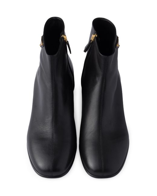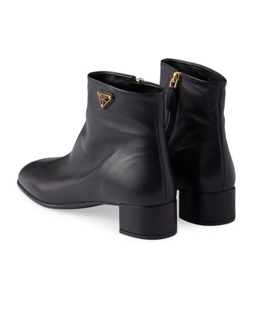 Leather lining Enameled metal triangle logo Side zipper closure Boot leg: 12 cm Rubber sole with hot-stamped logo Leather covered heel, height 35 mm / 1.3'' Imported 100% Lamb leather. Lsd Rtw - Prada Rtw > Prada > Saks Fifth Avenue > Barneys. Prada. Color: Black. Size: 5.