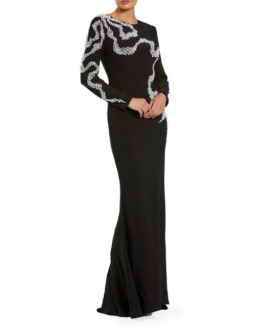 This gown from Mac Duggal is designed with beaded detailing and features a jewel neck and column silhouette. Jewel neck Long sleeves Concealed back zip closure 100% polyester Lining: 100% polyester Dry clean Imported SIZE & FIT Column silhouette About 61" from shoulder to hem Model measurements: 5'10" tall Model is wearing a US size 4 Please note: This Mac Duggal style includes an attached sash located inside the garment. If the sash is removed, this style cannot be returned. Dress Collections - Mac Duggal > Mac Duggal > Saks Fifth Avenue > Barneys. Mac Duggal. Color: Black. Size: 2.