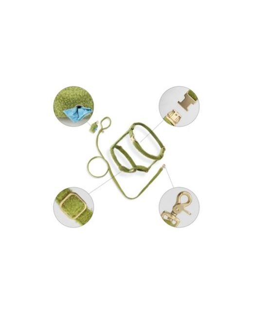 Take any dog to town with this trend-setting and ultra cozy walk set. Plush teddy boucle fabric is available in 3 colors. Classic harness and leash are easy-care nylon with durable hardware. A roll of 15 waste bags and matching holder for waste bags are also included. For more information on proper sizing, see The Licker Store's image size guide and how-to-wear harness video.