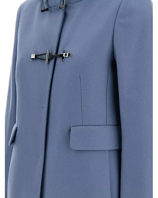 clear blue quilted hood toggle fastening front flap pockets long sleeves straight hem
