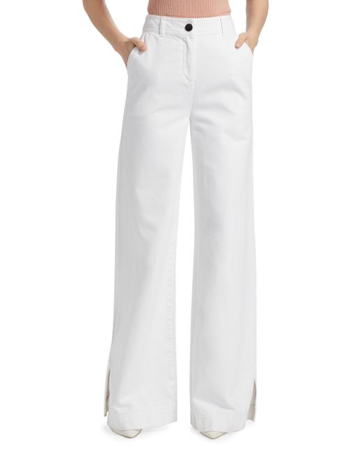 Toccin's Eilieen wide-leg pants feature a slit cuffs, side slant pockets, and back patch pockets. Band waistband, belt loops Side slant pockets Back patch pockets Zip fly, button closure 100% cotton Lining: 100% cotton Dry clean Imported SIZE & FIT Rise: about 9.75" Inseam: about 33" Model measurements: 5'10" tall Model is wearing a US size 4. Modern Collections - Branded Separates > Toccin > Saks Fifth Avenue > Barneys. Toccin. Color: Optic. Size: 2.