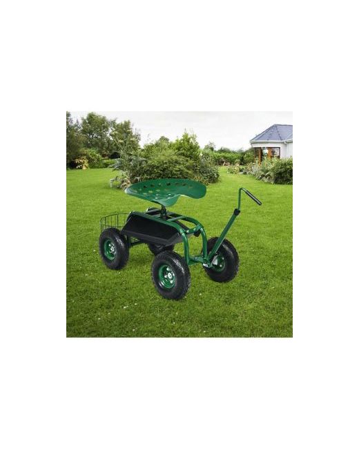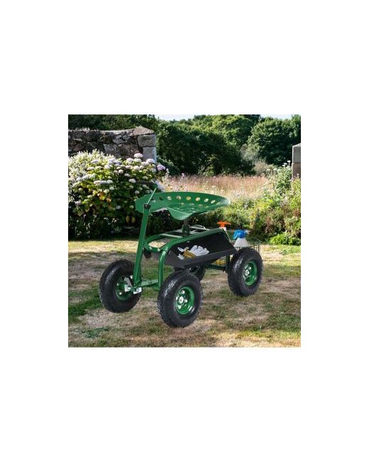 Adjustable Rolling Garden Cart with Swivel Seat and Tool Storage
