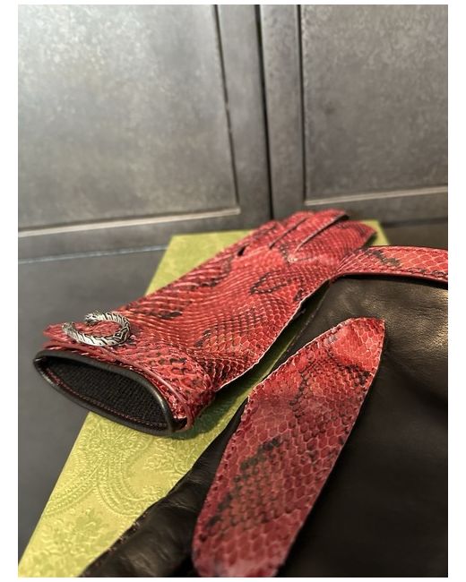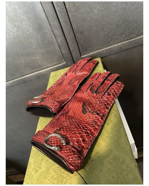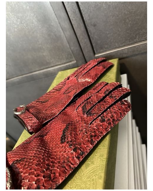 These Gucci Women's Leather Cherry Red Python Gloves in size 7.5 are a luxurious accessory made from high-quality leather with a cotton lining. Handcrafted in Italy, these stylish gloves feature a chic red colour and the signature Gucci brand, making them a versatile and elegant addition to any woman's wardrobe. Perfect for adding a touch of sophistication to any outfit, these gloves are a timeless piece that exudes luxury and style. Retailing at £750, they are a worthwhile investment for those who appreciate quality and fashion.