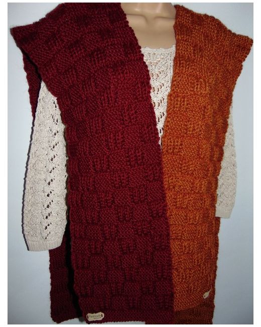 The yarn contains - 70% alpaca, 20% high fine wool & 10% others. Hand knitted dark garnet - extra warm chunky alpaca/wool scarf - hand made. Beautiful made using quality chunky Romantic Country alpaca/wool yarn, knitted on 8 size needles.