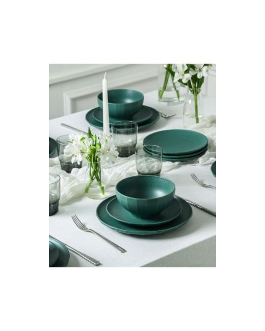 Infuse your dining space with edge and elegance with the Stone Lain Rio 32-Piece Stoneware Dinnerware Set in black. This collection is defined by its bold color palette, architectural fluted detailing, and rich glass accents-all carefully crafted to elevate the everyday.