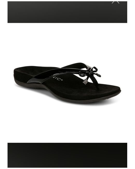 The Women's Vionic Orthaheel Bella IToe Post Flip Flop in black patent leather, size 7, is a stylish and comfortable slip-on sandal perfect for casual occasions. With a flat heel and medium width, these flip flops feature arch support and orthopedic comfort, making them ideal for all-day wear. The faux leather upper and bow accent add a touch of classic style to these Vionic sandals, while the customised design ensures a perfect fit for your feet. Made in China, these Vionic Orthaheel Bella II flip flops are a must-have for women looking for both fashion and function in their footwear.